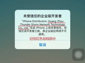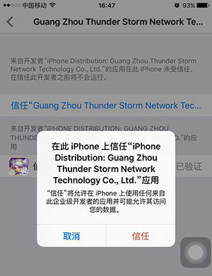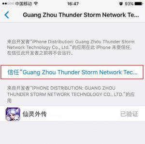 4)点击信任“Guang Zhou Thunder Storm Network Technology Co., Ltd.”