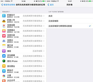 1)此时,在列表中任意选择一个App,先关闭“无线局域网与蜂窝移动数据“,即不允许其使用数据,然后再重新打开允许使用“无线局域网与蜂窝移动数据”。