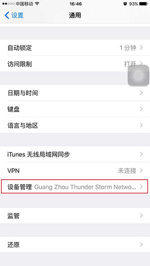 2)依次打开:设置→通用→设备管理(部分系统显示为“描述文件”)