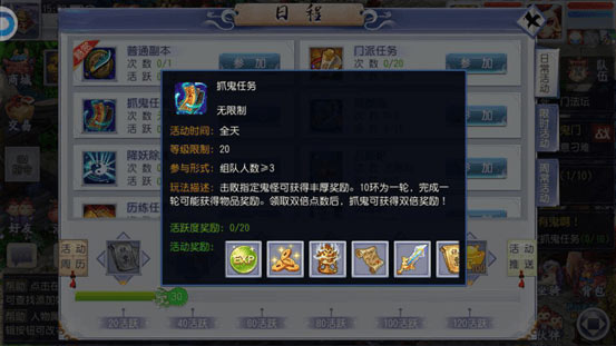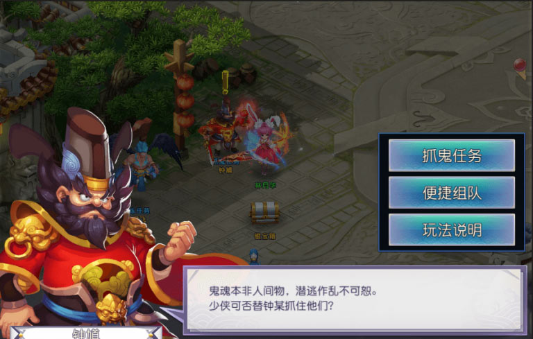 1. 只有等级达到20以上的玩家组成3人以上的队伍才可在钟馗处进行捉鬼任务。